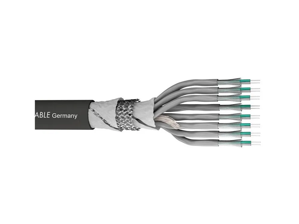 Multipárový kabel, 12 párů vodičů samostatně stíněných postříbřeným měděným opletení a PVC izolací s číslováním + celkové stínění kabelu postříbřeným měděným opletením.