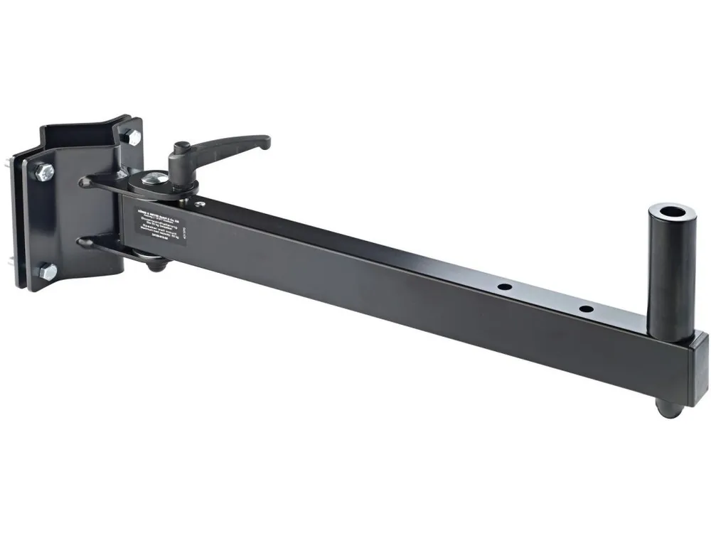 Držák reproduktoru pro vertikální traverzové systémy. Trubková svorka vhodná pro průměr 45 – 55 mm. Nosnost 50 kg. Adaptér pro reproduktorové hnízdo 35 mm.
