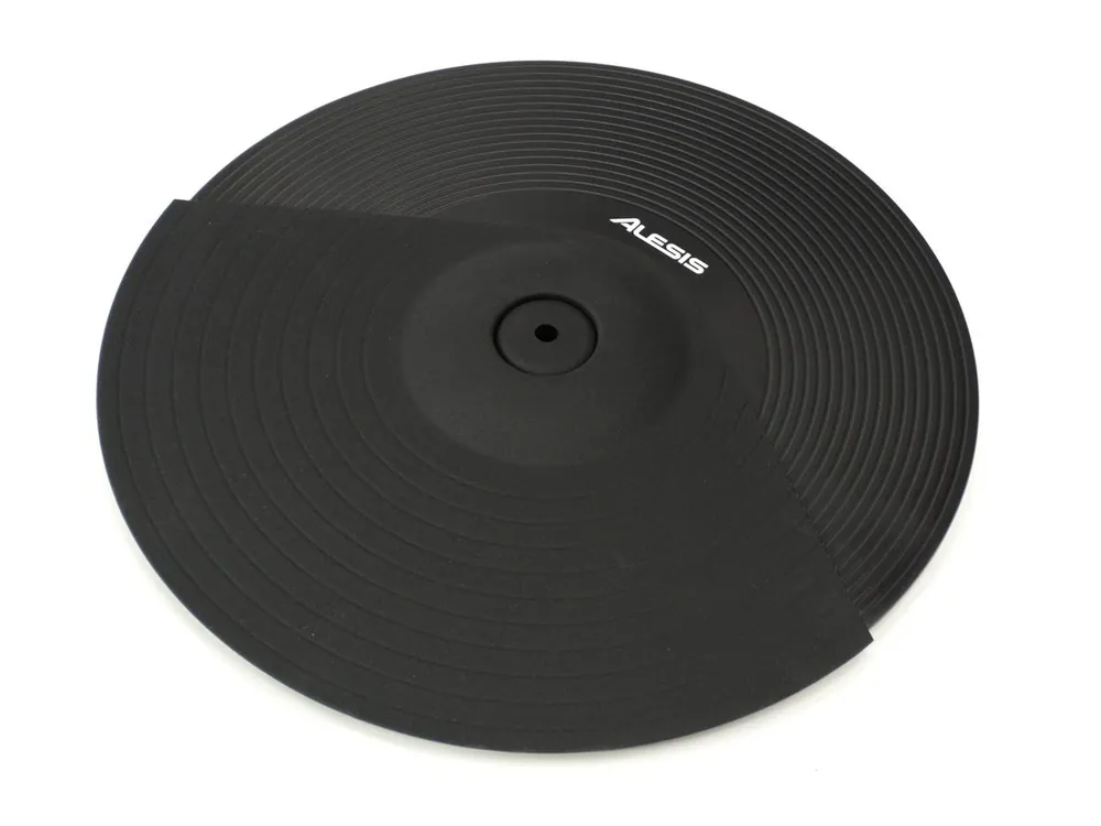 ALESIS– 2. zónový činelový pad o průměru 14″, hrací výseč je potažena měkčí gumou pro příjemnější a realističtější pocit ze hry. Standartně dodáván k soupravám DM10, propojovací kabel ani miska pod činel nejsou součástí balení, zapojení na jeden jack 6,3 (v druhém vstupu je záslepka).