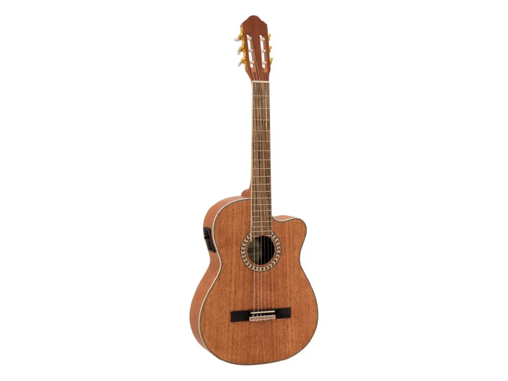 Elektroakustická klasická kytara 4/4 s výkrojem. Vrchní deska smrk, spodní deska a luby mahagon, krk nato, hmatník ořech, 19 pražců, kobylka javor, menzura 650 mm, nultý pražec 50 mm, lemování těla černobílou výložkou, mosazná mechanika s perleťovými knoflíky. Aktivní elektronika, kobylkový snímač, vestavěná chromatická ladička, ovládání hlasitosti, basů, středních a vysokých tónů, přepínač fáze, indikátor vybití baterie, výstup Jack 6,35 mm. Barva přírodní lesklá.