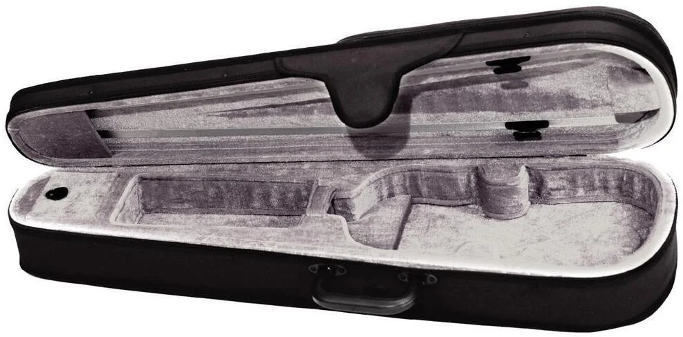 odlehčený kufr pro violu, přišroubovaný potah s malou kapsou pro noty, vypodložení v oblasti spodní části a obruby, 2 přišité popruhy, hmotnost 1.5kg, venkovní černý tex, uvnitř světle šedý samet, vyrobeno ze styrofómu, různé velikosti