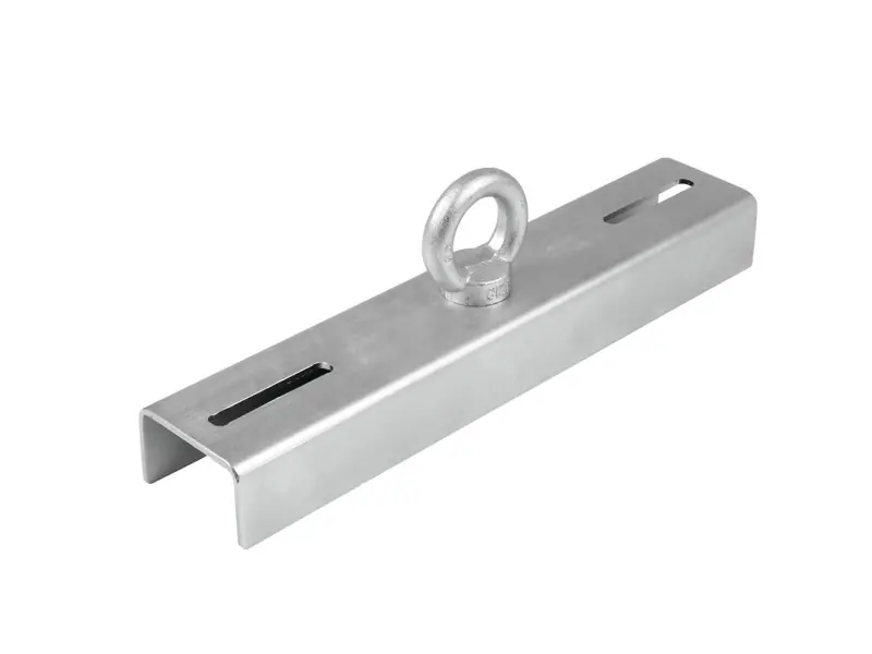 U-profile for hanging truss from the ceiling. Designed for rectangular trusses from 25 to 40 cm. Thanks to its adjustable system, just one adapter can be used for different trusses. M20 ring bolt with washer and self-locking nut. With two TPC-50 clamps.