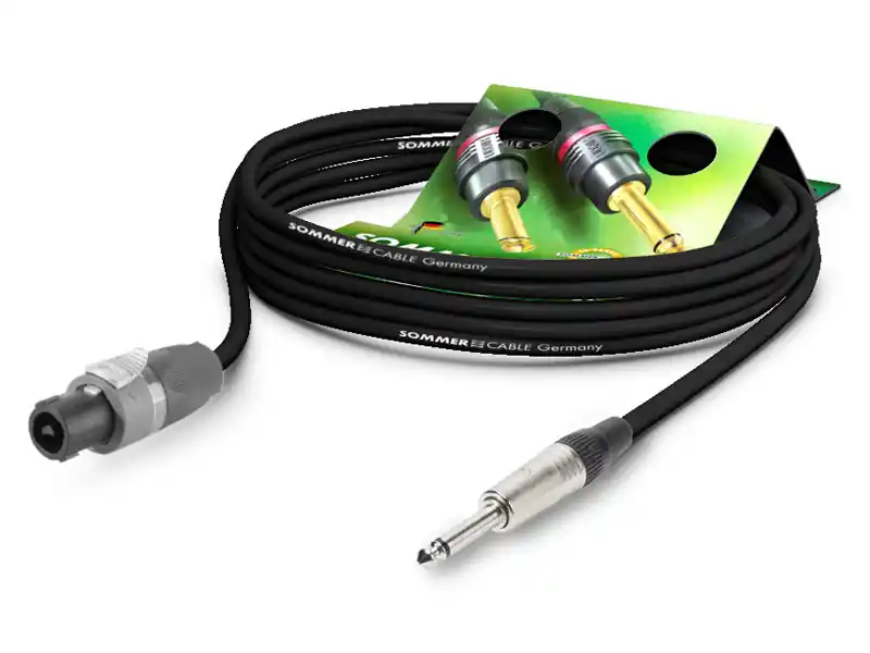 Kabel je vyrobený z kvalitního kabelu Sommer Cable MERIDIAN 2×2,5mm a je osazený konektory NEUTRIK Speakon NL2FX a Jack 6,3mm NP2X.