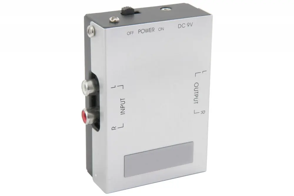 Kompaktní stereo předzesilovač pro gramofony. Tako praktická krabička slouží pro zesílení signálu gramofonu, aby odpovídal a vyhovoval linkovému vstupu zesilovače či mixážního pultu. Předzesilovač je vybaven vypínačem Power ON/OFF a napájí se pomocí dodávaného síťového adapteru nebo 9 V baterie (PP3, není součástí dodávky). Připojení signálu (IN/OUT) pomocí klasických RCA (L/R) konektorů.