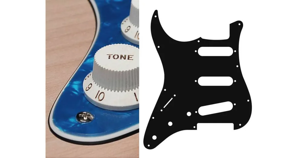 Pickguard, Stallion, standardní, SSS, 3 otvory na potenciometry, 3-5 polohový spínač, pro leváky, 3 vrstvy, perlově modrá barva