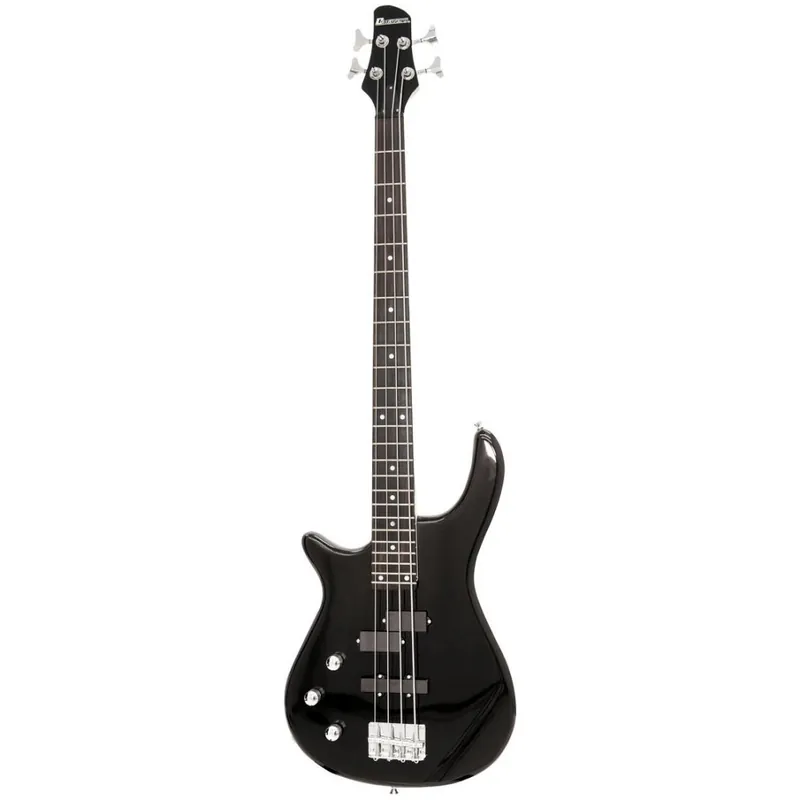 Elektrická baskytara typu Fusion pro leváky. Tělo catalpa, šroubovaný krk javor, menzura 864 mm, hmatník blackwood, 24 pražců, kobylka klasická JB, chromovaná mechanika die-cast, 1x jednocívkový snímač, 1x dělený jednocívkový snímač, 2x ovládání hlasitosti, 1x ovládání tónu. Barva černá lesklá.