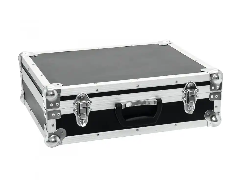 Universal case with high-density foam interior. Customizable pickfoam interior and dividers. Interior can be customized without cutting or further work. High-quality workmanship with plywood multilayered glued, black laminated. Upholstered cover. Aluminum profile frames (22 mm) with rounded edges. Three-leg, medium-sized steel ball corners. 2 high-quality spring locks (lockable). Rugged handle.
