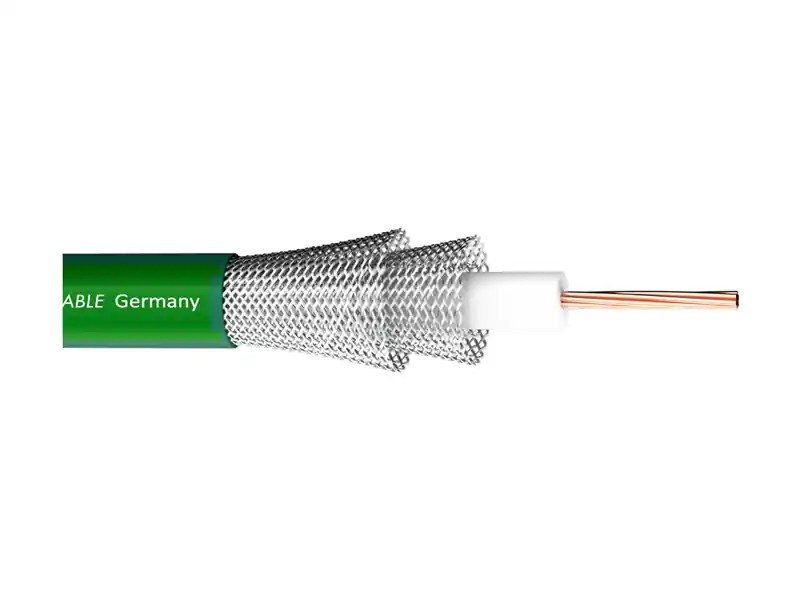 Profesionální 75Ohm videokabel vhodný pro přenos 3G a 6G signálu. Lankový hlavní vodič 7×0.53mm (AWG16). Tloušťka izolace 7.3mm, dvojité pocínované měděné 100% stínění, kapacita na 1m 52.4pF, průměr PVC 10.3mm, hmotnost 1m 140g, teplotní rozsah využití -30°C – +80°C, barva zelená