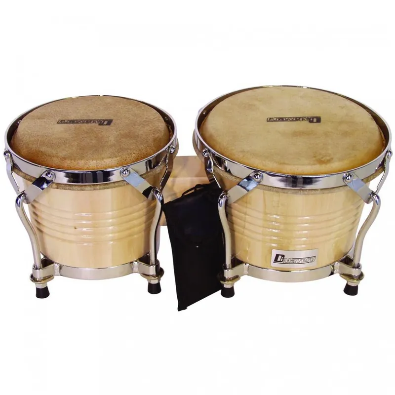 Profesionální bonga, průměr 6,5″ + 7,5″, barva přírodní světle hnědá. Dřevěné korpusy s přírodní kůží. Tradiční napínací ráfky.