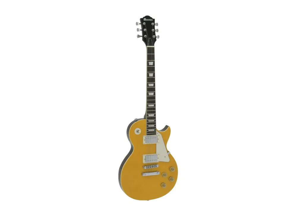 Elektrická kytara typu Les Paul. Tělo lípa, krk javor lepený, menzura 630 mm, hmatník blackwood, 22 pražců, pevná kobylka typu Tune-O-Matic, chromovaná mechanika, 2x dvoucívkový snímač (Humbucker), 2x ovládání hlasitosti, 2x ovládání tónu, 3-polohový přepínač. Barva zlatá (vrchní deska), lesklá.