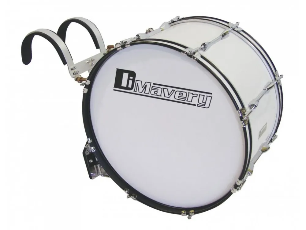 DIMAVERY MB-428 buben basový pochodový 28″ x 12″ Dřevěné pláště s laminátovým potahem. Mechaniky – chromované provedení. Součástí čalouněný a nastavitelný hliníkový ramenní postroj.
