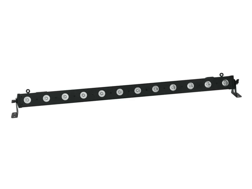 LED světelná lišta osazená dvanácti výkonnými 4W QCL (RGBA) LED. Funkce statických barev, RGBA míchání barev, nastavení teploty barev, funkce stmívání a stroboskopický efekt. Zabudované interní programy, automatický provozní režim, ovládání pomocí DMX signálu nebo v režimu Master/Slave, zabudovaný mikrofon pro ovládání hudbou. Podpora QuickDMX (systém bezdrátového přenosu DMX signálu od Eurolite). Integrovaný fantomový USB port pro QuickDMX přijímače. Plynulá projekce barev bez blikání. Pohodlné adresování a nastavení provozních režimů pomocí ovládacího panelu s LED displejem. Možnost zavěšení i postavení světelného efektu na pevnou podložku. Průchozí výstup umožňuje propojení napájení až 8 zařízení.