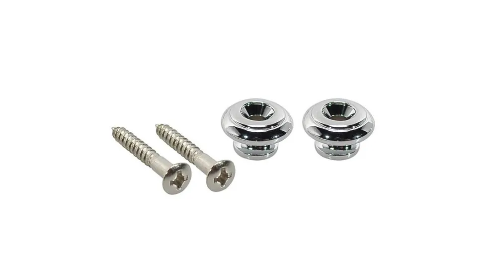 Knoflíky pro kytarový popruh, kovové, se šroubem, v-model, průměr 15 mm, 2 ks, chromové