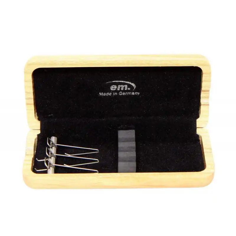 Masivní dřevěné pouzdro s pružinovou úchytkou– Pro 3ks strojků pro hoboj, délka až 7 cm– Pružinová mechanika pro nasazení– Otvory k odvětrávání– Černě lakované