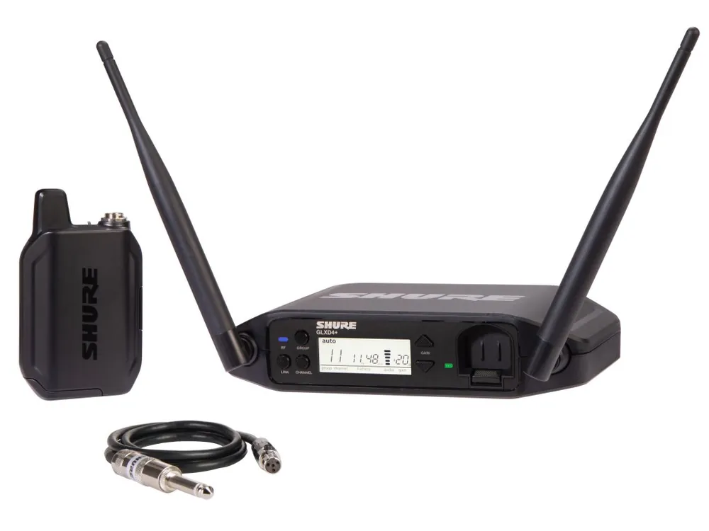 SHURE GLXD14+ je digitální bezdrátový set obsahující stolní příjímač GLXD4+, bodypack vysílač GLXD1+ a nástrojový kytarový kabel WA302. Sestava pracuje v bezlicenčních pásmech 2,4 a 5,8 GHz, poskytuje zvuk v 24bitovém rozlišení s dynamickým rozsahem až 120 dB. Uplatní se všude, kde jsou kladeny vysoké požadavky na spolehlivost přenosu a čistotu zvuku. Přehledné ovládání umožňuje snadné zprovoznění celého systému, kompaktní rozměry a nízká hmotnost vysílače zaručují uživateli neomezenou mobilitu.