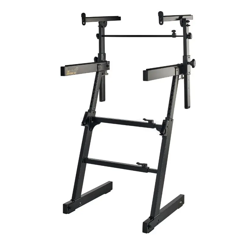 Robustní klávesový stojan Z konstrukce, který na svých ocelových bedrech unese až 130 kg. Díky přídavnému patru s mechanismem EZ-Lok pro nastavení požadovaného úhlu snadno přidáte do svého set-upu další nástroj. Snadná manipulace a složení. Nastavitelné gumové nožky srovnají případné nerovnosti terénu.