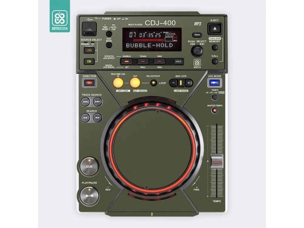 Nalepovací skin pro DJ přehrávač Pioneer CDJ-400 v provedení FULL COLORS, barva army green (vojenská zelená).
