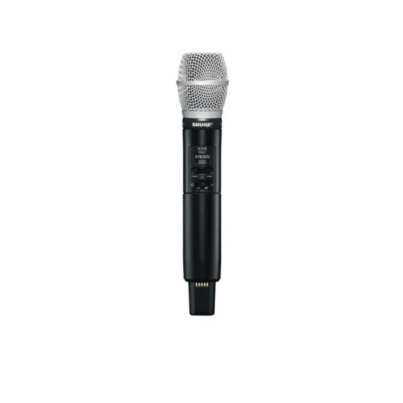 K ovládání slouží vysoce kontrastní LCD displej a dvě navigační tlačítka. Rychlé zprovoznění sestavy usnadňuje automatické IR párování přijímače s vysílačem. V závislosti na zvoleném provozním režimu lze bez nežádoucích interferencí provozovat až 12 systémů současně. Vysílač je osazen kondenzátorovou mikrofonní kapslí SM86, která poskytuje čistý nezkreslený zvuk v celém spektru od 50 Hz do 18 kHz. Její frekvenční charakteristika je přizpůsobena pro snímání živého zpěvu. Díky systému vyměnitelných kapslí lze SLXD2 v případě potřeby vybavit jiným typem mikrofonní hlavy (prodávané jako zvláštní příslušenství). Vysílač je schopen na jedno nabití pracovat po dobu až 8 hodin. K napájení lze použít dvě AA baterie nebo akumulátor Shure SB903.