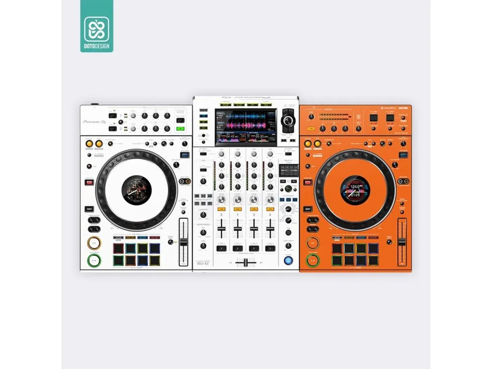 Nalepovací skin pro MIDI kontroler Pioneer XDJ-XZ v provedení s asymetrickým designem, barva orange-white (oranžovo-bílá).