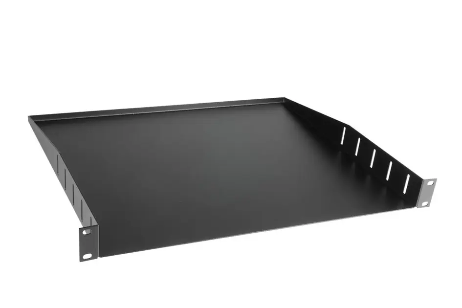 19″ extra hluboký 1U rack pro montáž nestandardních zařízení s hloubkou až 375 mm. 10 mm zadní hrany pro větší stabilitu. Ventilační otvory v bocích.