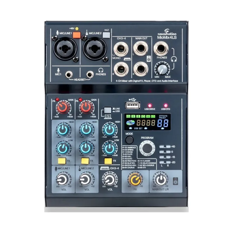 MIOMIX 4LS spojuje malé rozměry s funkcemi, které běžně najdete u větších pultů: vestavěné efekty, přehrávač/rekordér, Bluetooth i USB audio rozhraní. Je navržený tak, aby šel rychle zapojit a okamžitě používat.