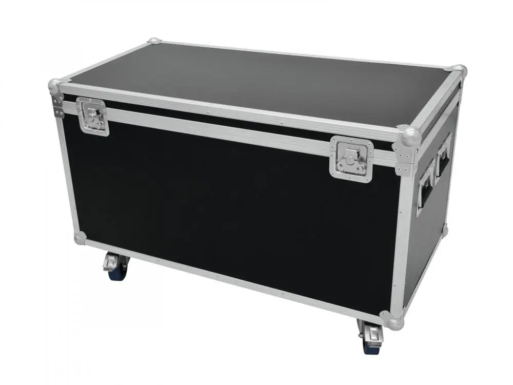 High-quality workmanship with 7 mm multiplex birch wood, dark brown laminated. Aluminum profile frames (30 mm) with rounded edges. Three-leg, medium-sized steel ball corners. 2 hinges. 2 butterfly locks. 4 case handles. 4 castors, 2 of which with locking brakes. Made in Europe.