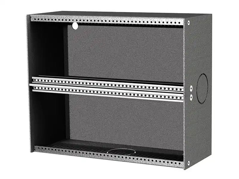 Nástěný instalační box 2 HE, 12 BE, hloubka 80 mm, kovové provedení barva antracit, závity pro šroubky S-G2508 M2,5 x 8. Vhodný je například panel SYFB21-2D.