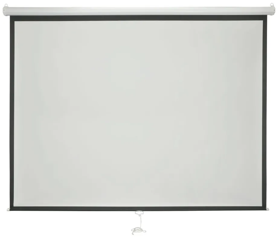 Mechanické roletové projekční plátno pro zavěšení. Plátno lze stáhnout na určenou výšku a zajistit v požadované pozici. Kvalitní pružinový mechanizmus pro navíjení plátna. Plátno je umístěné v bílém ocelovém pouzdře s montážními držáky na strop či stěnu. Závaží ve spodní liště plátna zajišťuje jeho snadné navíjení, odvíjení a vypnutí při projekci. Černý okraj projekční plochy pro ostrý obraz. Odolné vůči ohni a plísním.