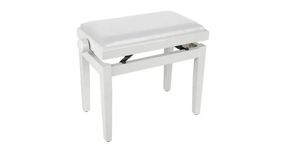 Klavírní židle s nastavitelným sedadlem (55,5 x 32,5 x 48-56 cm), lesklá bílá s bílým koženkovým sedadlem