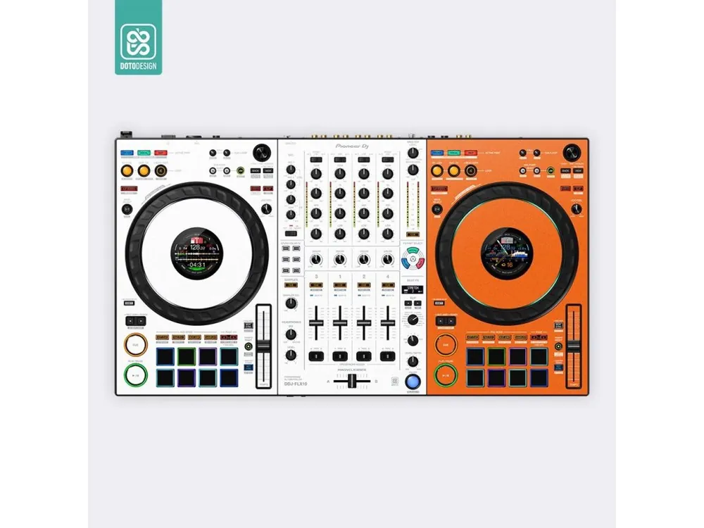 Nalepovací skin pro MIDI kontroler Pioneer DDJ-FLX10 v provedení s asymetrickým designem, barva orange-white (oranžovo-bílá).