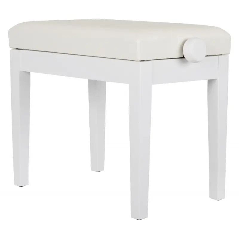 Klavírní stolička s kvalitním sedákem z umělé kůže v matném bílém provedení s bílým sedákem a nastavitelnou výškou v rozmezí 48 – 58 cm, výrobce Classic Cantabile. Dvojitý křížový mechanismus a pevná dřevěná konstrukce zajišťují maximální stabilitu. Stoličku zvládnou sestavit i amatéři během několika minut. Jediné, co musíte udělat, je připevnit čtyři nohy k rámu každou jedním šroubem. Potřebný nástroj je již součástí dodávky.