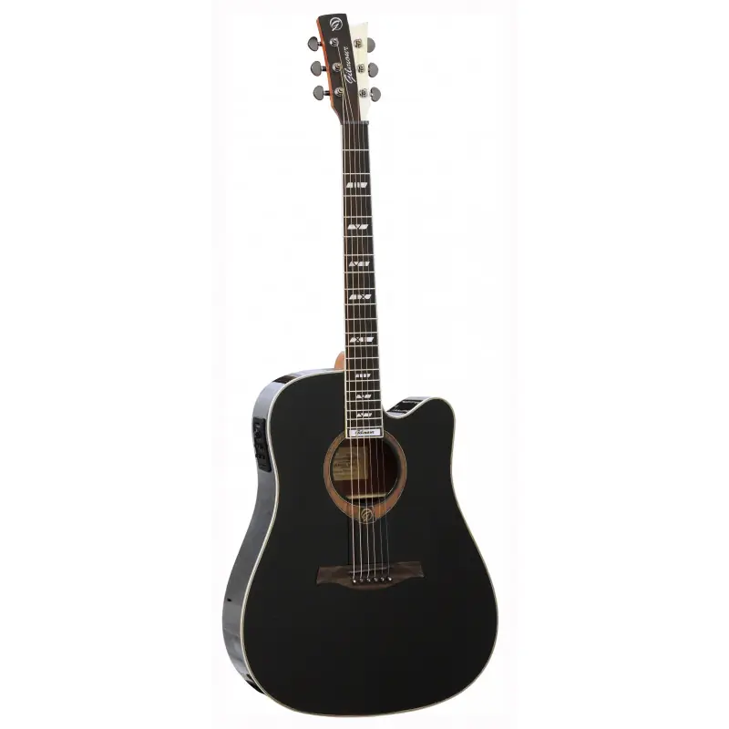 Elekroakustická kytara typu Dreadnought v černém lesku s výřezem, přední deskou z AA výběrového masivního smrku Sitka a zadní deskou, luby a krkem z mahagonu. Kytara zaujme na první pohled originálním designem, má javorovou lemovku a disponuje konstrukcí sound hole, díky které jsou podpořeny spodní frekvence nástroje. Nástroj je osazen značkovou elektronikou Fishman Presys Plus.