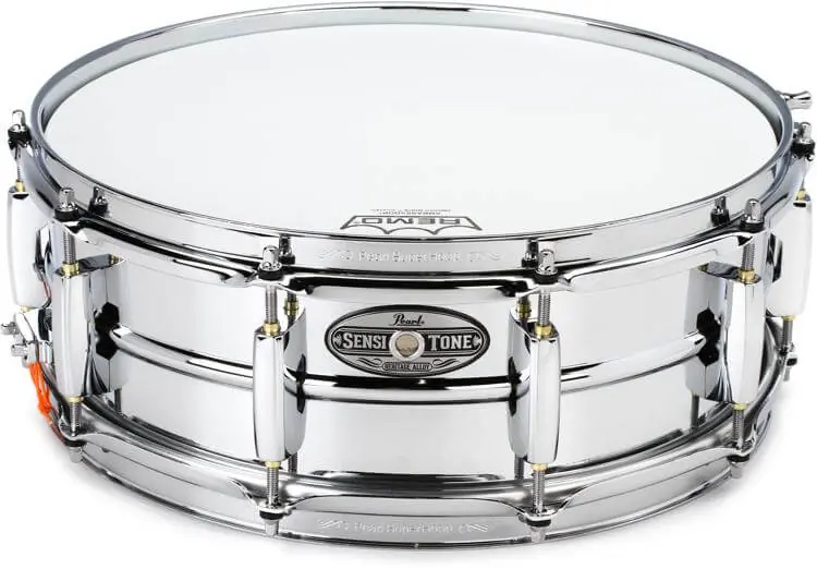 Pearl STH1450S Sensitone Snare 14 „x5“ Steel ze série Heritage Alloy je profesionální malý bubínek s Remo hlavami. Ocelové tělo o tloušťce 1 mm poskytuje čistý zvuk s výbušným charakterem. Tento chromovaný ocelový malý buben je nadčasovou klasikou ve studiu i na pódiu. Snare bubínek je osazen Lugi Pearl CL-55, tedy klasickým ouškem Masters. Pevné 2,3mm obruče SuperHoops II zaměřují zvuk a poskytují potřebnou stabilitu ladění. Celý je doplněn strunami Remo USA.