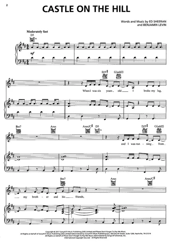 Kolekce 14 nejpopulárnějších hitů roku 2017 včetně Castle On The Hill, Despacito, Mama, Passionfruit, Symphony a další… Notový zápis skladeb je v úpravě melodická linka s textem, kytarové akordové značky a klavírní part.