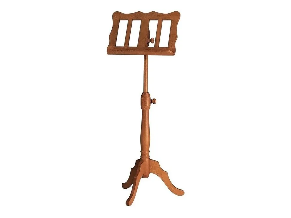 Dřevěný notový pult v barokním designu s pevnou deskou. Vyrobený z masivního buku. Výška 960/1320 mm. Rozměry desky 450 x 310 mm. Vyrábí se v barevných variantách: ořech, buk a třešeň.
