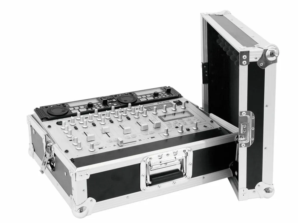 Variabilní kufr pro 19″ mixážní pult, 8U, výklopné profilové kolejničky, polstrovaný vnitřek, vyrobeno z 6 mm MDF, černé laminování. Hliníkové profilové rámy (25 mm) se zaoblenými rohy. Odnímatelné víko. 3-ramenné, ocelové zakulacené rohy střední velikosti. 2 vysoce kvalitní motýlkové zámky. 4 ocelí vyztužené gumové nohy. Padací držadlo. Montážní materiál (18 kusů) součástí dodávky.