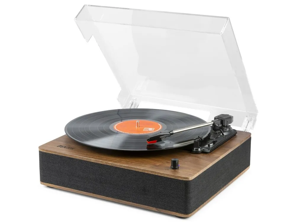 Vychutnejte si autentický zvuk vinylu a hrajte všechny nejlepší desky pomocí tohoto gramofonu Fenton RP161 dodávaného se dvěma stereofonními reproduktory s plným rozsahem. S vestavěným přijímačem BT lze také bezdrátově streamovat digitální hudbu ze smartphonu, tabletu nebo jiného zařízení kompatibilního s BT a poslouchat ji do stereo reproduktorů. Tento vysoce kvalitní gramofon má pevný ručně vyrobený dřevěný kryt a je vybaven odnímatelným průhledným krytem proti prachu. RP161 má kompaktní velikost, takže si ho můžete snadno vzít kamkoli.