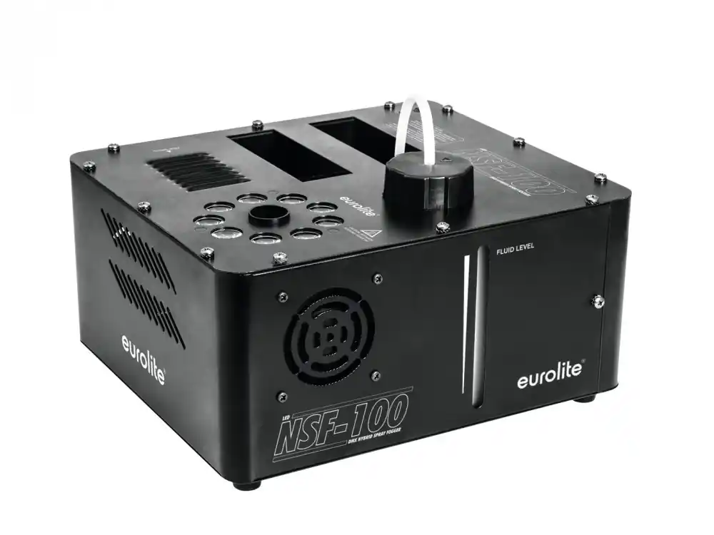 Snadno ovladatelný výrobník mlhy s DMX s vertikálním výfukem a světelným LED efektem. Výkon 850 W. Výstupní tryska s RGB LED osvětlením pro barevné mlhové efekty. Výkonný vertikální mlhový výstup až 4 metry v bohatých barvách RGB. Ovládání pomocí volitelného bezdrátového ovladače WRC-4 (není součástí) nebo integrovaného rozhraní DMX512. Tlačítko pro ruční aktivaci. Volitelná barva LED, změna barvy a stroboskopický efekt. Podsvícená nádržka s indikací hladiny. Ovládací panel s LED displejem a čtyřmi ovládacími tlačítky. Kompaktní kovové pouzdro s držadlem. Optoelektronický detektor nízké hladiny. Dálkový ovladač EUROLITE WRC-4 s přijímačem (č. 51702027) je k dispozici jako příslušenství.