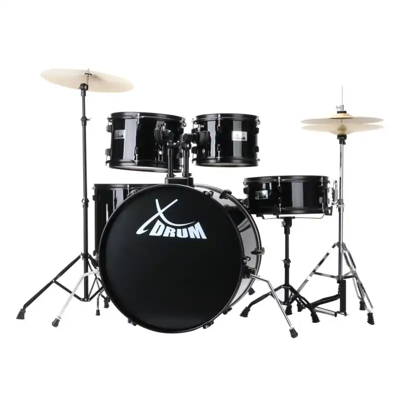 Velikost 22″, 10″, 12″, 14″, 14″ Snare kompletní bicí souprava, ideální pro začátečníky, stylový hardware v černé barvě, včetně paliček 5B a lekcí bicích zdarma s DVD.