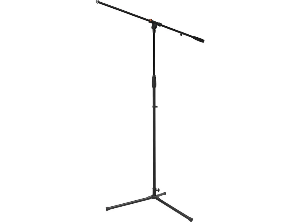 Kvalitní nastavitelný otočný mikrofonní stojan s trojnohou základnou a mosazným závitovým zámkem.