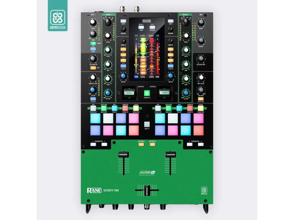 Nalepovací skin pro mixážní pult Rane Seventy-Two 72 v provedení COLORS DVS, barva green (zelená).