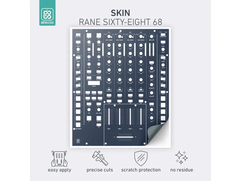 Nalepovací skiny Doto Design jsou perfektní pro přizpůsobení vzhledu vašeho DJ vybavení (mixážní pulty, gramofony, přehrávače, kontrolery). Na výběr je velké množství barev a exkluzivních vzorů pro vytvoření jedinečného vzhledu. Skiny jsou precizně vyrobeny z prémiových materiálů, mají matný antireflexní povrch a ochrání vaše vybavení před poškrábáním a opotřebením. Díky nové adhezivní vrstvě je aplikace velmi jednoduchá a v případě sundání skinu nezůstanou na technice žádné stopy nebo zbytky lepidla.
