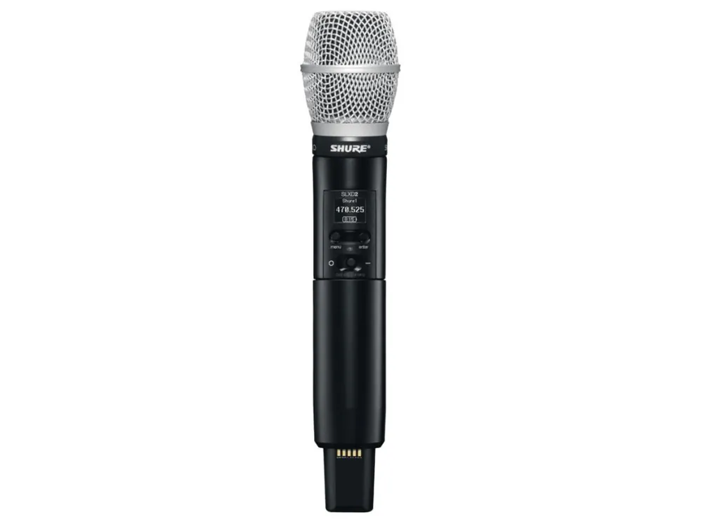 K ovládání slouží vysoce kontrastní LCD displej a dvě navigační tlačítka. Rychlé zprovoznění sestavy usnadňuje automatické IR párování přijímače s vysílačem. V závislosti na zvoleném provozním režimu lze bez nežádoucích interferencí provozovat až 12 systémů současně. Vysílač je osazen kondenzátorovou mikrofonní kapslí SM86, která poskytuje čistý nezkreslený zvuk v celém spektru od 50 Hz do 18 kHz. Její frekvenční charakteristika je přizpůsobena pro snímání živého zpěvu. Díky systému vyměnitelných kapslí lze SLXD2 v případě potřeby vybavit jiným typem mikrofonní hlavy (prodávané jako zvláštní příslušenství). Vysílač je schopen na jedno nabití pracovat po dobu až 8 hodin. K napájení lze použít dvě AA baterie nebo akumulátor Shure SB903.