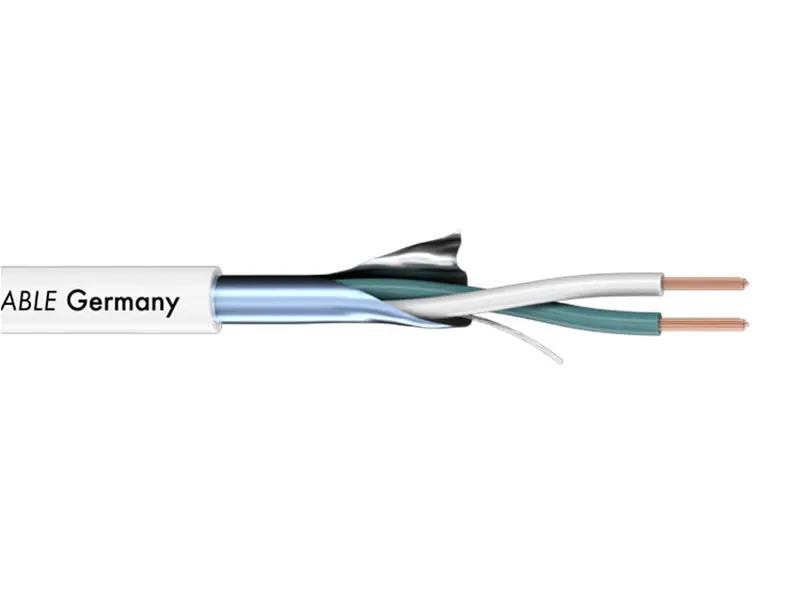 Symetrický instalační kabel, kvalitní OFC měď, průřezy jádra 2×0,22mm, 100% stínění AL/PT fólií, průřez PVC 3,3mm, teplotní rozsah použití -25°C až + 70°C, hmotnost 1m 16g, barva bílá.