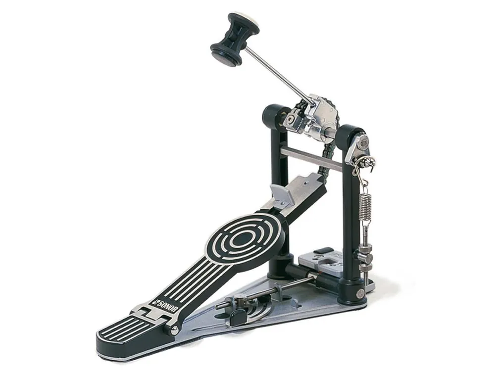 Sonor SP673 – Jednoduchý single pedál, který však již nabízí pevnou základu s protiskluzovými hroty, dvoustranný beater, zarážku pro špičku boty, dvojitý řetěz a smart system uchycení k obruči.