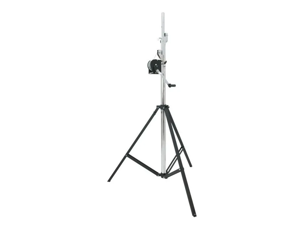 Ideální ocelový stojan s klikou na zvedání traverz nebo těžkých PA systémů. Maximální výška stojanu je 4m, max. nosnost 80kg, hmotnost 25kg.