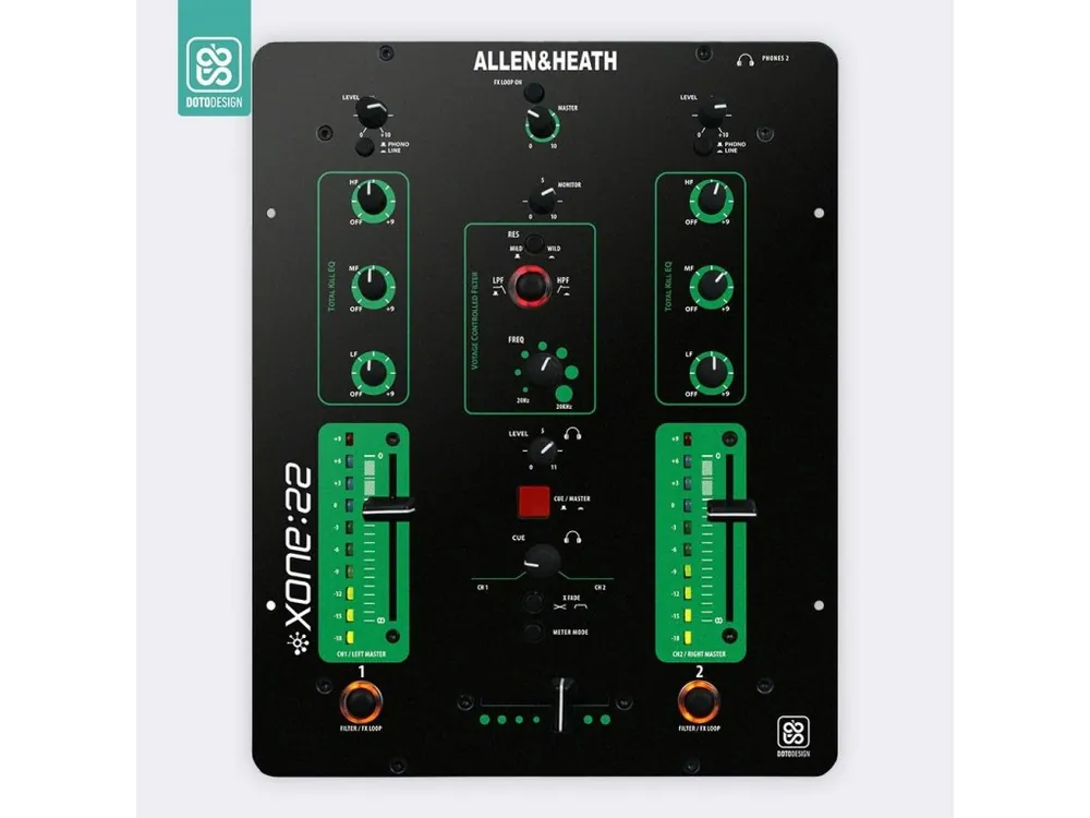 Nalepovací skin pro mixážní pult Allen & Heath XONE:22 v provedení COLORS, barva green (zelená).