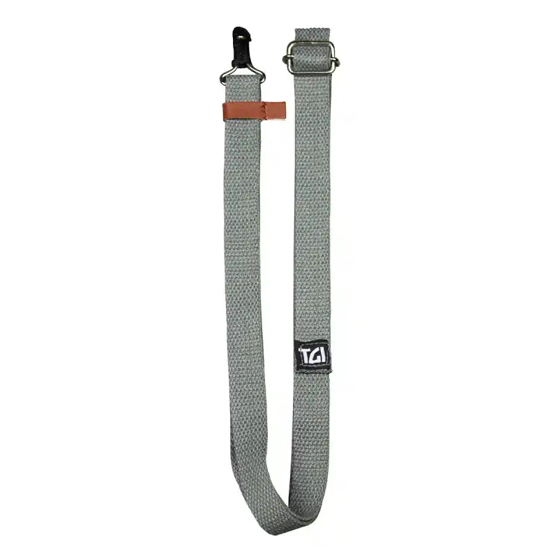 Popruh na ukulele v šedém provedení s logem TGI, tkaný a snadno nastavitelný. Tento popruh je určen pro zavěšení nástroje do rezonančního otvoru. Délka je nastavitelná v rozmezí 69 až 136 cm, šířka 2 cm.