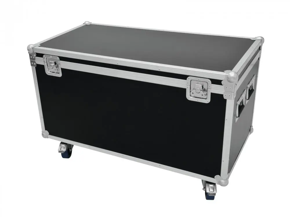 High-quality workmanship with 7 mm multiplex birch wood, dark brown laminated. Aluminum profile frames (30 mm) with rounded edges. Three-leg, medium-sized steel ball corners. 2 hinges. 2 butterfly locks. 4 case handles. 4 castors, 2 of which with locking brakes. Made in Europe.