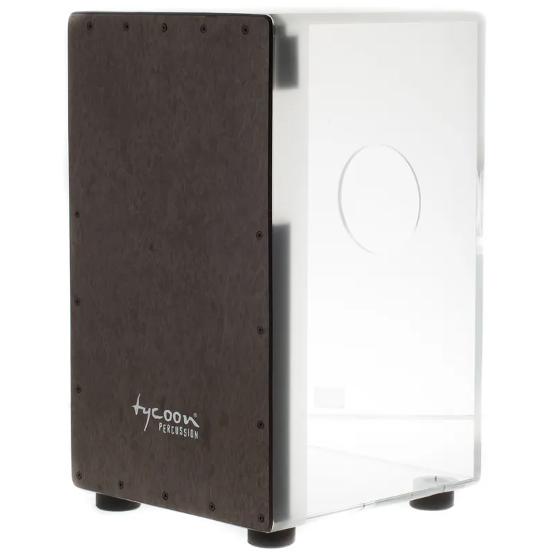 ACRYLIC CAJONNázev Cajon pochází ze španělštiny, kde toto slovo znamená bedýnku – to vypovídá nejen o tvaru, ale i původu tohoto latinsko-amerického perkusního nástroje. Jde totiž doopravdy o dřevěnou krabičku s ozvučným otvorem, ve které jsou nataženy laditelné struny podobně jako třeba u virblu. Traduje se, že tento nástroj vznikl tak, že otroci, kteří byly donuceni zbavit se svých tradičních bubnů, namísto nich použili bedny třeba od ryb nebo ovoce. V současnosti se Cajon používá ve všech hudebních stylech, kde jsou znatelné latinsko-americké vlivy, jako doma je ve flamengu či rumbě. Jde o velmi univerzální nástroj a ne nadarmo se říká, že zručný hráč je na něm schopný napodobit zvuk v podstatě celé sady bicích.Konkrétně tento Cajon je stejně jako všechny Cajony vyráběné u Tycoon Percussion produktem čistě ruční práce. Po sestavení je navíc pečlivě testován, aby nebylo možné pochybovat o jeho zvukových kvalitách. S Cajony Tycoon prostě nejde šlápnout vedle…Technické údaje•Cajon•materiál těla: acrylát•materiál přední desky: černý makah•rozměr přední desky: 20 x 11,5 palců (50,4 x 29,2 cm)•plně laditelné struny•ručně vyráběno